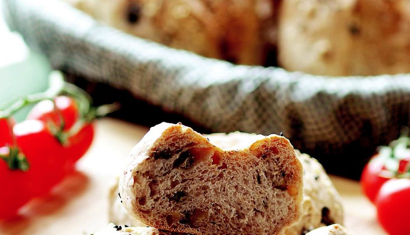 Kapariyi sudan geçirip süzün. Unu yoğurma kabına alıp üzerine maya ve tuzu ilave edin. Azar azar su ekleyerek yoğurun. Kapari ve cevizi de kattıktan sonra yeniden yoğurun. Kabın üzerini streç filmle kapayıp, oda sıcaklığında hamur iki misli büyüklüğe ulaşana dek bekletin.