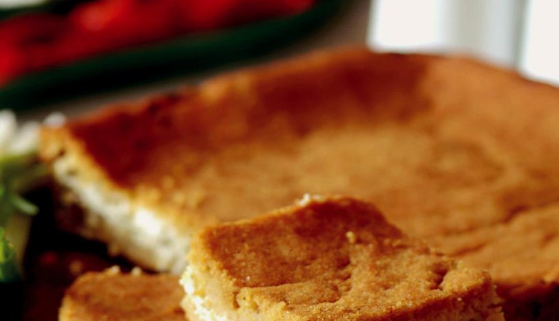 Üzerine yoğurtlu karışımı ekleyin. Onun da üzerine kalan mısır unlu karışımı yayın. Parmaklarınızla hafifçe sıvazlayın. 200 derece fırında üzeri kızarana dek pişirin. Ilınınca dilimleyerek servis yapın.