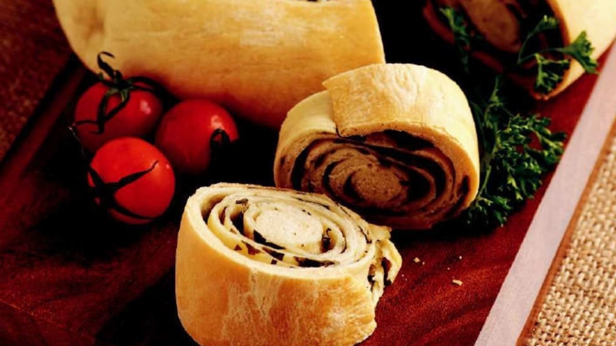 Ayrı bir yerde kıyılmış fesleğen, kekik, biberiye ve tuzu karıştırın. Otlu karışımı hamurların üzerine serpiştirerek pay edin. Her birini rulo şeklinde sarıp, uçlarını birleştirin. Yağlı kağıtla kaplanmış fırın tepsisin eyerleştirin. Önceden ısıtılmış 180 derece fırında, üzerileri kızarıp kabarana dek yaklaşık 40 dakika pişirin.