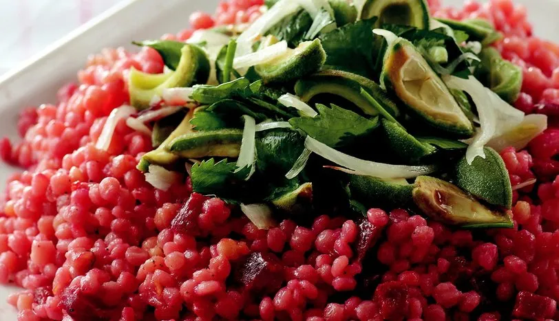 1 ÇAĞLALARI ikiye bölüp çekirdek yataklarını çıkarın. Az miktarda tuzlu suda 15 dakika haşlayıp suyunu süzdürün. 2 çorba kaşığı tereyağını eritip, 1 adet kıyılmış soğanı 5 dakika soteleyin. Çağla, kıyılmış kişniş veya maydanoz ekleyip soteleyin. 2 Pancarların kabuklarını iyice yıkayıp, 1 tatlı kaşığı tuz eklenmiş sudahaşlayın. Pancarları süzgeç yardımıyla başka bir tabağa alıp soğumaya bırakın. Soğuduktan sonra kabuklarını koyup, küp doğrayın. 3 Ayrı bir yerde 2 çorba kaşığı tereyağını eritin. İki veya dörde bölünmüş turp ekleyip, kısık ateşte soteleyin. 4 Kuskusu tuzlu suda 8-10 dakika haşlayıp suyunu süzdürün. Karabiber 2 çorba kaşığı zeytinyağı ilave edip karıştırın 5 Ayrı bir yerde kalan 2 çorba kaşığı zeytinyağını ısıtın. Kıyılmış 1 adet soğan ve sarmısakları ekleyip soteleyin. Pancar ilave edip karıştırın. Turp ve kuskus ekleyip karıştırmaya devam edin. 6 Kuskusu servis tabağına alın. Ortasını havuz gibi açıp, çağlalı karışımı yerleştirin. Ilık veya soğuk olarak servis yapın.