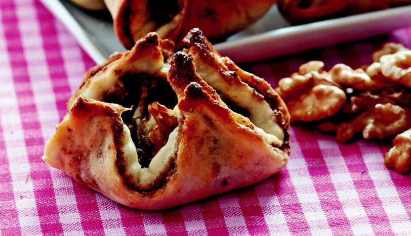 Hamurların 4 kenarına yumurta akı sürüp, ortada birleştirerek bohça şekli verin. Üzerine yumurta sarısı sürün ve fırın tepsisine yerleştirin. Önceden ısıtılmış 200 derece fırında üzerleri kızarana kadar pişirin.