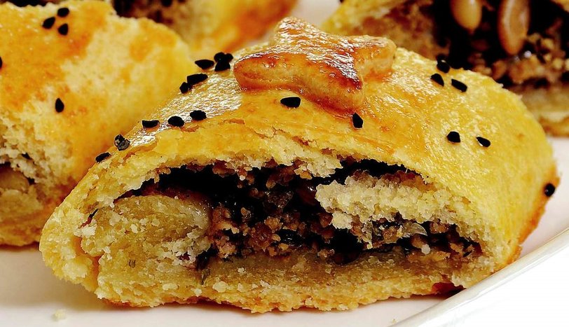 İrmik hamurunu tekrar 2 dakika yoğurun ve iki parçaya ayırın. Merdane ile açarak, defter yaprağı büyüklüğüne getirin. Hamurun uzun kenarına kıymanın yarısını uzunlamasına yerleştirin. Hamuru sararak rulo şekline getirin. Üzerine fırça ile yumurta sarısı sürün. İkinci hamuru da aynı şekilde hazırlayıp, yağlanmış fırın tepsisine sıralayın. 180 derece fırında 20-25 dakika pişirip, dilimleyerek servis yapın.