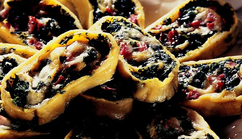 Öncelikle un, yumurta ve 1 çay kaşığı tuzu (su kullanılmıyor) yoğurup, hamur yapın. Merdane ile düz bir zeminde 30x30 cm ebatında açın. Ispanak, küçük doğranmış jambon ve rendelenmiş dil peynirini karıştırıp hamurun üzerine yayın. Hamuru rulo biçiminde sarın. Temiz bir beze (patiska olabilir) sarın. Her iki ucunu da bağlayın. Kaynar suda 20 dakika haşlayın. Daha sonra, içinde hamurun olduğu bezi sudan çıkarın. Bezi açın. Hamuru dilimleyin. Yağlanmış fırın tepsisine dizin. Orta ısılı fırında peynirler eriyene kadar tutun.
