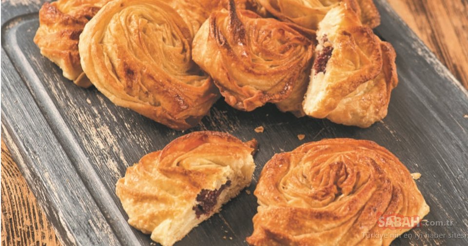 1 parça üçgen yufkanın üzerini yağlayıp, ortasından tutun ve saat yönünde iyice çevirerek gül şekline benzer bir form elde edin. Ortasına kıyılmış pastırma yerleştirip, yufkanın kenarlarından sarkan uçları pastırmanın üzerinde birleştirerek kapatın.