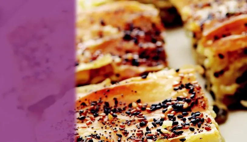 Makarnayı tuzlu suda haşlayıp süzün. Üzerine sıvı yağ gezdirip harmanladıktan sonra kenara alın. 1 çorba kaşığı tereyağını eritip ince kıyılmış soğanı rengi dönene kadar kavurun. Üzerine ince doğranmış pazı yaprağını ilave edin. Tuz, karabiber ve pul biber ilave edin. Yumuşayınca ocaktan alın. Kalan tereyağını eritip ılıtın. Üzerine süt ekleyip kenara alın. Kaşar peyniri ve beyaz peyniri bir kapta karıştırın. Yuvarlak bir tepsiyi yağlayın. 2 adet yufkayı dörde bölün. Kalan 1 adet yufkayı kenarları dışa taşacak şekilde tepsiye yayın. Yufkanın üzerine sütlü karışımdan sürün. Üzerine haşlanmış makarnadan ve pazılı harçtan koyun. Peynirli karışımdan serpin. Harcın üzerine parçalara ayırdığınız yufkalardan koyun. Sütlü karışımla ıslatın. Yeniden makarna, pazı ve peynir koyun. Bu işleme yufkalar ve diğer malzeme bitene kadar devam edin. Kenarları dışarı sarkan yufka ile böreğin üzerini kapatın. Kalan sütlü karışımı üzerine dökün. 15 dakika dinlendirin. Üzerine susam, çörek otu ve haşhaş tohumu serpin. Önceden ısıtılmış 180 derece fırında üzeri kızarana kadar pişirin. Dilimleyerek servis yapın.