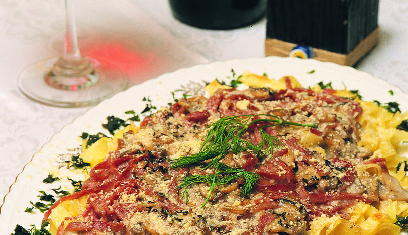 MANTARLARI dilimleyin ve kızdırılmış sıvıyağda kavurun. Mantar, suyunu bırakıp çekene kadar pişirin. Jambonları şerit halinde doğrayıp mantarlara ilave edin. Birlikte 2-3 dakika daha kavurun. Nişasta, tuz ve karabiber ekleyip iyice karıştırın. Bu arada papardelleyi bol suda 9 dakika haşlayın. Süzüp servis tabağına alın. Üzerine mantarlı karışımı yayın. En üste rendelenmiş parmesan peynirini serpip servis yapın.