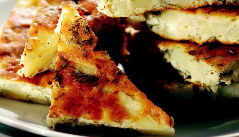 Patatesleri soyup küp doğrayın. Soğanı rendeleyip patatesle harmanlayın. Üzerine yoğurt, yumurta, sıvı yağ, un, kabartma tozu, ince kıyılmış maydanoz ve dereotu ekleyip karıştırın. Tuz, karabiber ve pulbiber ekleyip tekrar karıştırın. Düz bir fırın tepsisini yağlı kağıt ile kaplayın ve malzemeyi yayın. Önceden ısıtılmış 180 derece fırında 25-30 dakika pişirin. Üçgen veya kare şeklinde dilimleyip sıcak servis yapın.AŞÇININ NOTUYoğurtla da servis yapabilirsiniz.