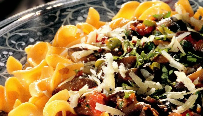 Makarnayı al dante (orta yumuşaklıkta) olarak tuzlu suda haşlayın. Daha sonra süzgeçten geçirin. Bu arada soğanı incecik kıyın. Patlıcanı küp doğrayın. Taze sarmısağı da incecik doğrayın. Bir tavaya 3 çorba kaşığı zeytinyağı alıp, soğanı kavurun. Patlıcanları atın. Harlı ateşte kavurmaya devam edin. Birkaç dakika sonra domatesi ekleyin. Altını kısarak pişirmeye devam edin. Taze sarmısak, ince kıyılmış fesleğen ve maydanozu ilave edin. Tuz ve karabiberini ayarlayın. Makarnanın üzerine gezdirip servis yapın.