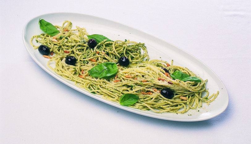 Pesto Soslu, Siyah Zeytinli Parmesanlı Spagetti