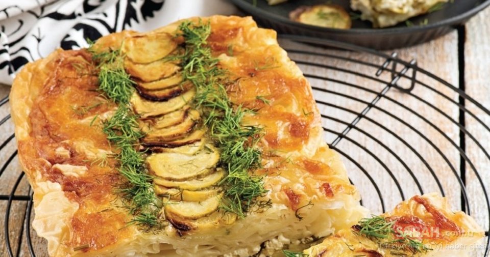 Kalan 1 adet yufkayı 4 eşit üçgen parçaya kesin. 2 parçasını büzerek kalıba yerleştirin ve üzerine yumurtalı harçtan sürüp, kabaklı karışımı yerleştirin. Kalan 2 parça yufkayı büzerek yerleştirip, üzerine yumurtalı karışımdan sürün ve peynirli harcı yayın. Kenarlardan sarkan yufkaları büzerek ortada birleştirin. Üzerine kalan yumurtalı karışımı gezdirip, kenara ayırdığınız kaşar peynirini serpin. Ortasına 1 adet kabağı dilimleyip dizin. Önceden ısıtılmış 170 derece fırında 35-40 dakika pişirin.