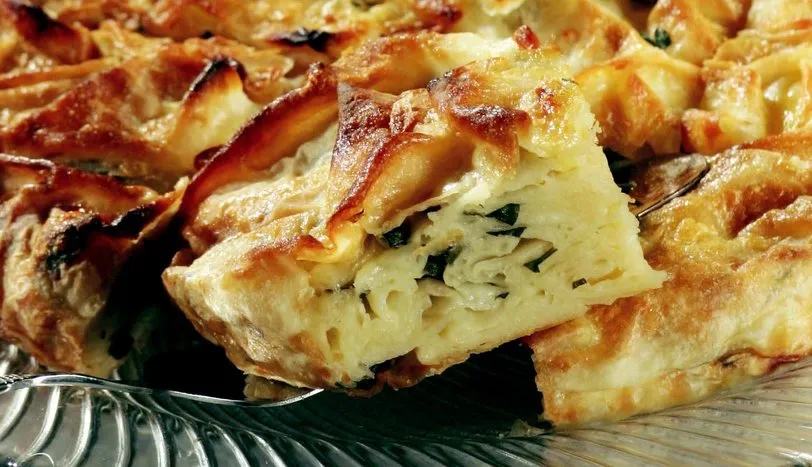 Çatal ile ezilmiş peynir, ince kıyılmış maydanoz, tuz ve karabiberi bir kapta karıştırın. Üzerine eritilmiş tereyağı veya margarini süt ve çırpılmış 2 yumurtayı ilave edip, karıştırın. Fırın tepsisini yağlayıp bir bütün yufkayı, kenarları dışarda kalacak şekilde yerleştirin. Kalan üç yufkayı şeritler halinde kesin. Sonrasında şeritleri peynirli sütlü karışıma ekleyip karıştırın ve tepsideki bütün yufkanın ortasına dökün. Tepsinin kenarından sarkan yufkayı içe doğru alıp malzemenin üzerini kapatın. Üzerine kalan yumurtanın sarısını sürün. Önceden ısıtılmış 200 derece fırında 25-30 dakika pişirin. Piştikten sonra böreği dilimleyerek servis yapın.