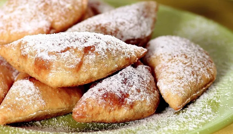Elenmiş unu derin bir kaseye alın ve ortasını havuz şeklinde açın. İrmik, süt, toz şeker, tuz ve zeytinyağını ilave edip iyice yoğurun. Hazırladığınız hamuru yarım saat dinlendirin ve hamurdan ceviz büyüklüğünde parçalar koparın. Merdane ile çay tabağı büyüklüğünde açın. İçi için badem, kuru üzüm, antep fıstığı, hindistan cevizi, toz şeker ve tereyağını karıştırın. Açtığınız hamurun bir kenarına iç harçtan 1 çorba kaşığı koyup diğer tarafı poğaça yapar gibi üzerine kapatın. Hamur ve iç harç bitene kadar işleme devam edin. Hazırladığınız poğaça tatlıları kızgın sıvı yağda kızartın. Yağının süzülmesi için kağıt havlu üzerine alın. Servis tabağına aldıktan sonra üzerine pudra şekeri serpin.