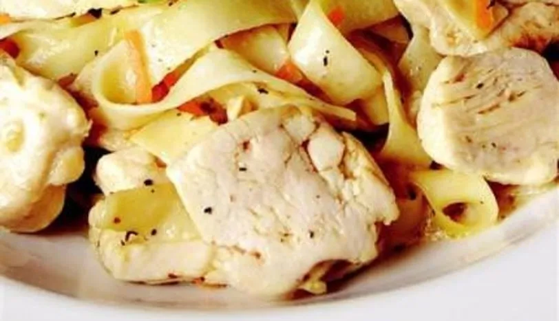 FETTUCCINE'Yİ tuz ve sıvıyağ ilave edilmiş sıcak suda, 5-10 dakika haşlayın. Suyunu süzüp kenara alın. 2 çay kaşığı tereyağını tavada eritip, 1 çay kaşığı zeytinyağını ilave edin. Ezilmiş sarmısak ve zencefili ekleyip karıştırın. Küp doğranmış tavuğu ilave edip, tavuklar pişene kadar karıştırın. 1 adet portakalın rendelenmiş kabuğu ve 2 adet portakalın suyunu ekleyin. 1 dakika daha pişirip, üzerine fettuccineyi ilave edin ve karıştırın. Tuz ve karabiberini ayarlayın. Ayrı bir yerde kremayı kısık ateşte 1 dakika pişirip fettuccine'ye ekleyin ve ocaktan alın. Sıcak servis yapın