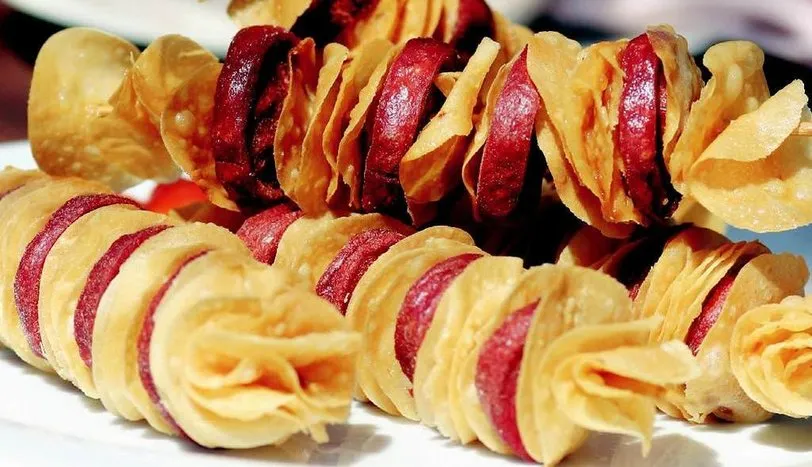 Sosisleri yarım cm kalınlığında dilimleyip kenara alın. Yufkaları üst üste koyun ve dörde katlayın. Sosislerden biraz daha büyük bir kapak yardımıyla yufkalardan yuvarlaklar çıkarın. Daha sonra çöp şişlere bir adet sosis ve bir yufka katı olmak üzere dizin. Sıvı yağda kızartıp sıcak servis yapın.