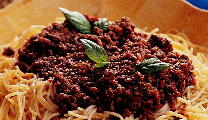 Domatesleri rendeleyin. Kıymayı bir tavaya alıp kendi yağında kavurun. Kavurma işleminden sonra, rendelenmiş domatesi ekleyin. Ezilmiş sarmısağı, tuz ve karabiberi ekleyip domates suyunu çekene kadar pişirin. Spagettiyi hazırlamak için derin bir tencereyi suyla doldurun. Suya yarım çay bardağı zeytinyağını ekleyip kaynatın. Su kaynadıktan sonra makarnayı suya atıp 9 dakika haşlayın ve süzün. İsteğe göre makarnayı büyük bir servis tabağına veya yemek tabaklarına paylaştırıp üzerine bolonez sos dökerek servis yapın.