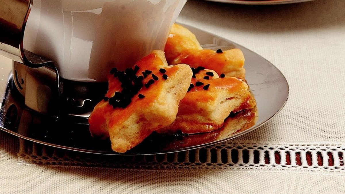 Yıldızları, yağlanmış fırın tepsisine dizin. Üzerlerine yumurta sarısı sürüp çörek otu serpin.