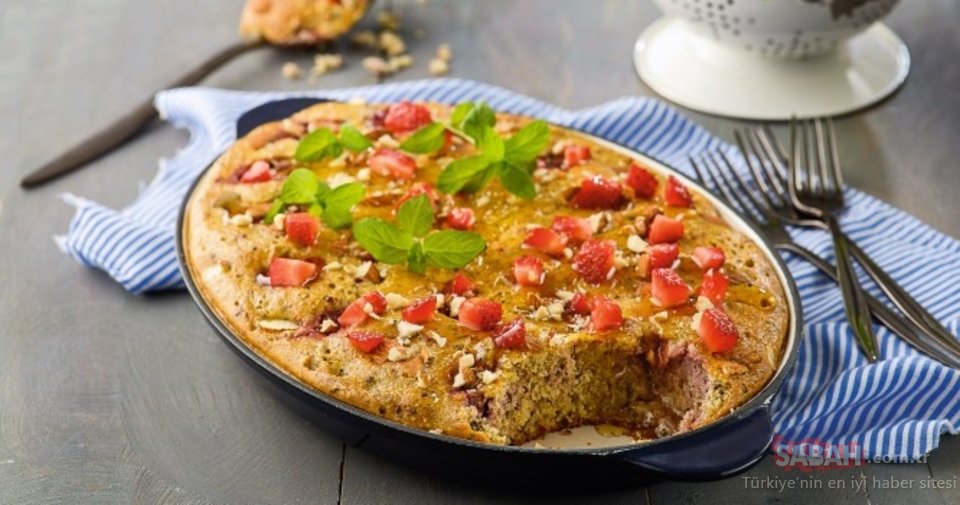 Ocaktan alıp önceden ısıtılmış 180 derece fırında 12 dakika pişirin. Fırından alıp bekletmeden üzerine bal gezdirin. İkiye bölünmüş çilek, doğranmış badem ve nane ile süsleyip, ılık veya soğuk olarak servis yapın.