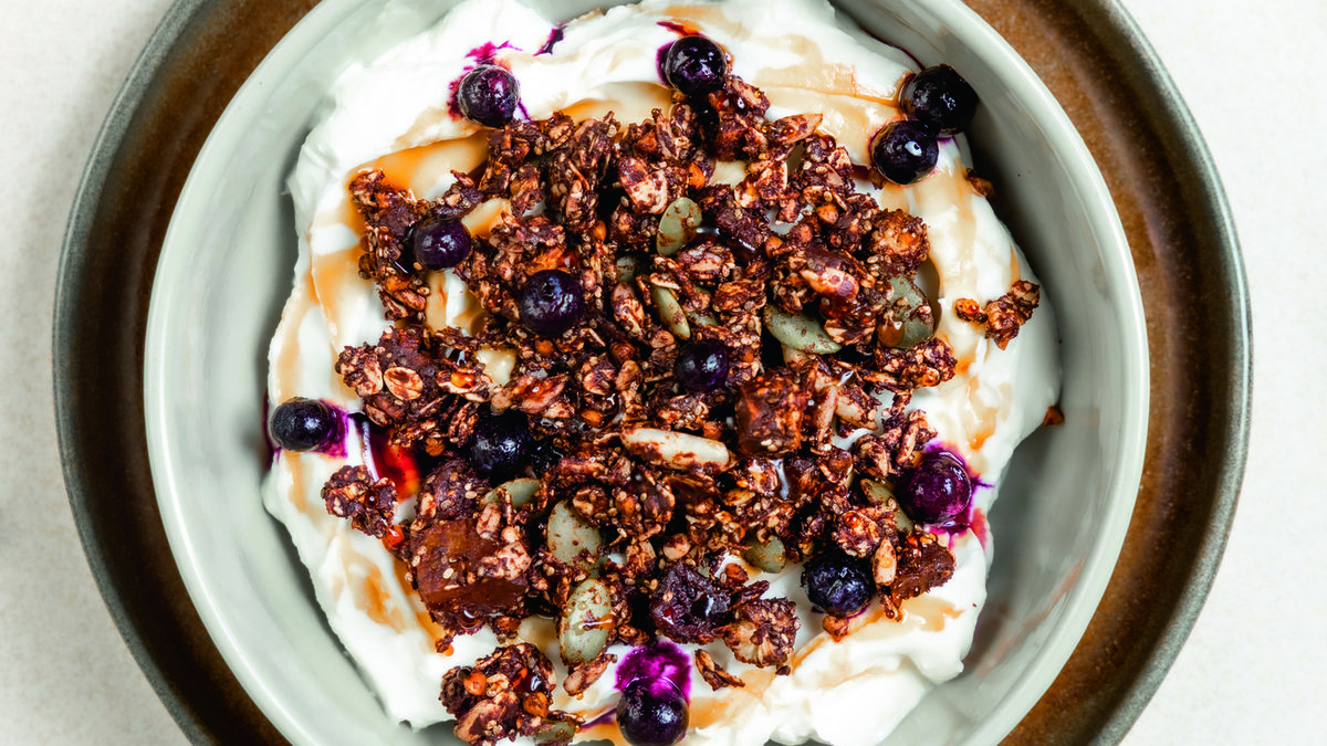 Granola karışımını sebze kurutucusu tepsilerine aktarın. 40 derecede 18 saat kurutun.