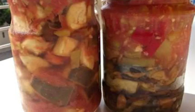 Size iki farklı tarif verecegim.1.tarif:Patlıcanları yıkadıktan sonra alaca soyalım,domatesleri ve biberleri de yemeklik dograyalım ve hepsini tencereye alalım.Üzerine az tuz ilave edelim.Bir miktar pişirdikten sonra(yani 2-3 taşım kaynattıktan sonra)sıcak sıcak kavanoza alalımve kapagını kapatalım.Ayrı bir tencerede 1 su bardagı kadar suyu kaynatalım ve kapagı kapalı kavanozu ters çevirerek suyun içine koyalım(kapak kısmı tencerenin tabanına gelecek)ve bu şekilde 10 dakika kadar kısık ateşte kaynatalım.Sonra çıkaralım ve mutfak tezgahına bir bez serelim kavanozları kapak kısımları alta gelecek şekilde üstüne koyalım ve bu şekilde 1 gece bekletelim.Ertesi gün eger sızıntı yoksa buzdolabına veya muhafaza edecegiz yere kaldıralım.