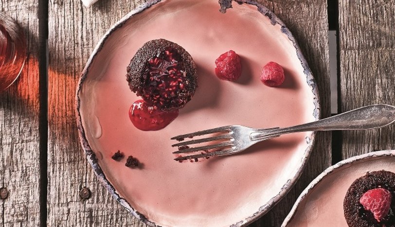 Pişen ve soğuyan minik keklerin içinden bir çay kaşığı ile parçalar koparın. İçlerine soğumuş reçelden birer çay kaşığı koyun. Birer adet ahududu ile süsleyerek servis yapın.