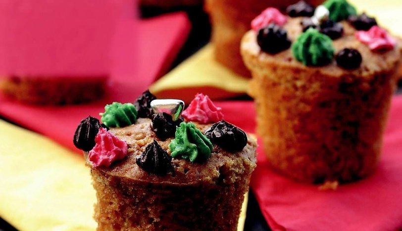 Daha sonra bu karışımı yumurtalı karışıma ilave edin. Yağlanmış muffin kalıplarına pay edip, önceden ısıtılmış 180 derece fırında 35-40 dakika pişirin.