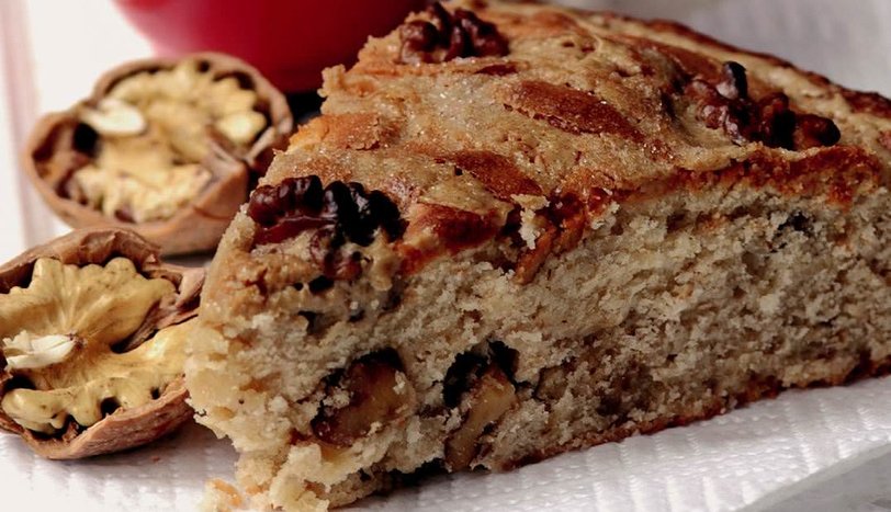 Karışımı yağlanmış yuvarlak kek kalıbına yayın. Üzerine tahini gezdirip toz şekeri serpin. Cevizleri yerleştirin. Önceden ısıtılmış 180 derece fırında 40-45 dakika pişirin. Soğuduktan sonra dilimleyerek servis yapın.