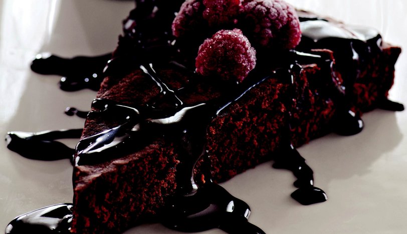 Arası için, kremayı ılıtıp, küçük parçalara ayrılmış çikolata ekleyin. Karıştırarak çikolatanın erimesini sağlayın. Yumurtalı karışımın yarısını, yağlanıp unlanmış 22 cm çapındaki yuvarlak kalıba veya orta boy dikdörtgen bir cam kaba boşaltın.