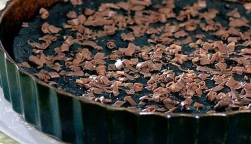 İçine şekeri ilave edip koyu bir kıvam alıncaya kadar çırpmaya devam edin. Kaşık kaşık kakaolu karışımı yumurtalı harca eklerken mikserle çırpmaya devam edin. Unu ekleyip bütün malzemeyi karıştırın. Hamuru yağlanmış orta büyüklükteki bir tart kalıbına boşaltın.