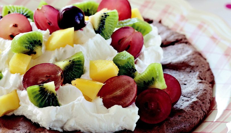 Diğer taraftan krem şantiyi soğuk sütle karıştırıp, mikserle kıvam alana kadar çırpın ve soğuması için buzdolabında 1 saat bekletin. Kremayı soğuyan pavlovanın orta kısmına doldurun. Üzerini doğranmış kivi, üzüm ve mango ile süsleyip, servis yapın.