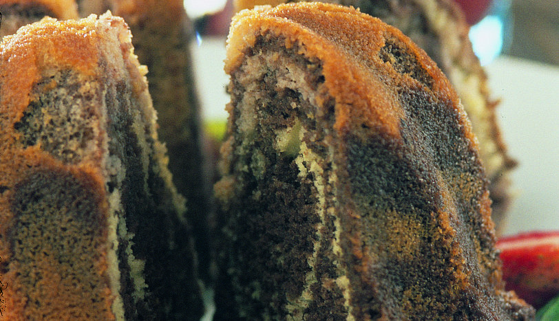 Kek kalıbını hafifçe yağlayın ve unlayın. Hazırladığınız kek karışımının yarısını kalıba dökün. Kalan karışıma kakaoyu ekleyip karıştırın.Kakaolu karışımı da kalıptaki karışımın üzerine döküp önceden ısıtılmış 180 derece fırında 45-50 dakika kadar pişirin. Kekin pişip pişmediğini bir kürdan yardımıyla kontrol edin.