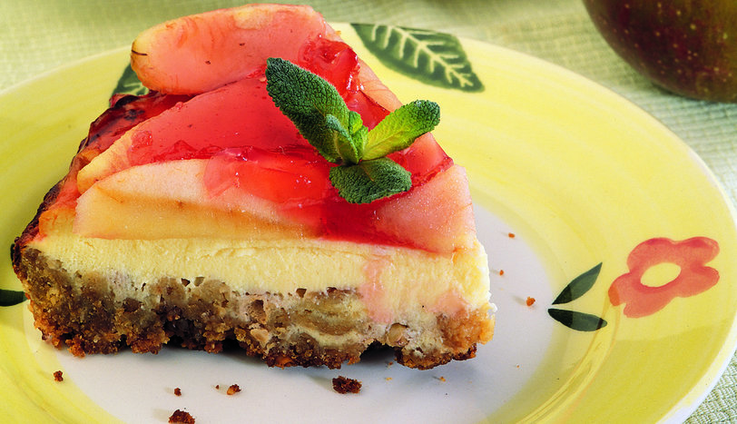 Hamuru elmaların üzerine dökün. Ceviz içlerini hamurun üzerine yerleştirin. Önceden ısıtılmış 200 derece fırında, 10 dakika pişirin. Fırının ısısını 180 dereceye düşürün. Fırının kapağını açmadan 20 dakika kadar pişirin.