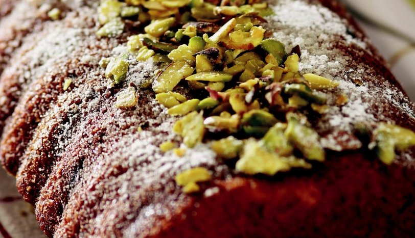 Önceden ısıtılmış 180 derece fırında 35-40 dakika pişirin. Servis tabağına alın. Üzerine pudra şekeri ve kıyılmış antep fıstığı serperek servis yapın. - 2
