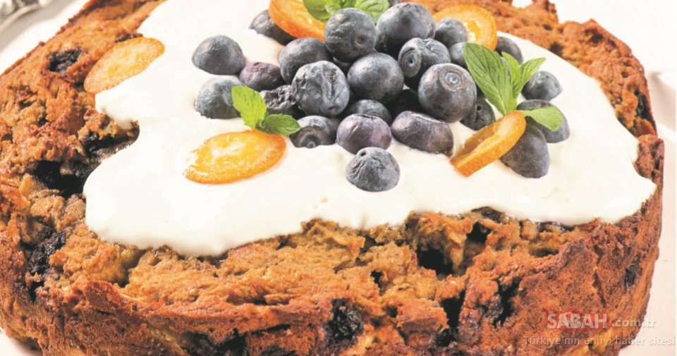 Yumurtaları püreye ekleyin. Süt ilave edip karıştırın. Fındık, kabartma tozu ve kuru fasulye ununu ekleyip 2-3 dakika karıştırın. Yaban mersini ilave edip, dikkatlice harmanlayın.