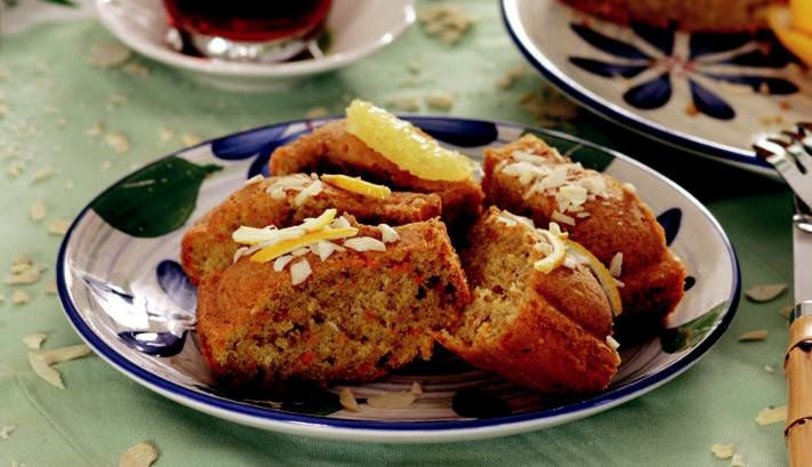 Yağladığınız kek kalıbına hamuru döküp önceden ısıtılmış 180 derecelik fırında 40 dakika pişirin. Kalıptan çıkardıktan sonra portakal dilimleri, badem ve rendelenmiş portakal kabukları ile süsleyerek servis yapın. - 2