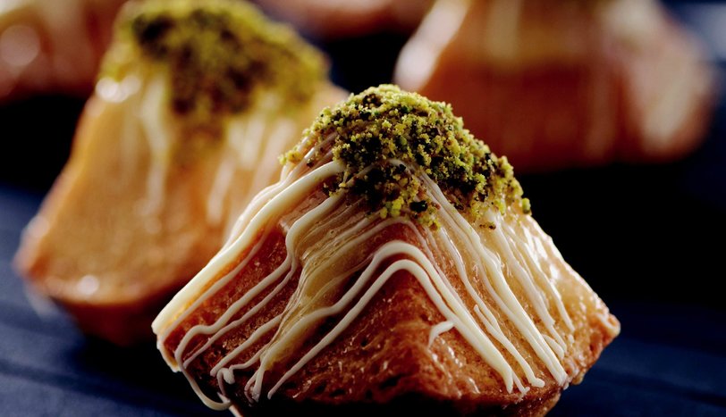 Soğuyan kekleri kalıplardan çıkarın ve uç kısımlarını önce soğuyan vanilyalı sosa batırın. Daha sonra toz antepfısıtığına batırıp, servis tabağına alın.