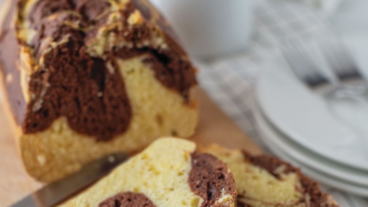 Derin bir kapta toz şeker, vanilya ve yağı mikserle çırpın. Üzerine bitkisel süt, un ve kabartma tozunu ekleyip tekrar çırpın. Karışımın yarısını kenara ayırıp kalanını kakao ile karıştırın. Pişirme kağıdı yerleştirilmiş orta boy ve baton kek kalıbına önce sade karışımı, üzerine de kakaolu karışımı dökün.