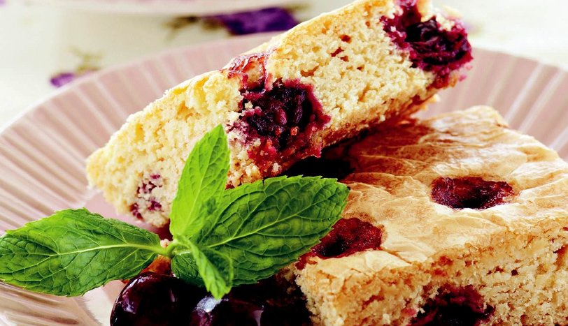 18x28 cm ebadındaki ısıya dayanıklı bir kabı yağlayıp, yağlı kağıt ile kaplayın. Karışımı bu kaba yayın ve vişneleri gelişigüzel kekin içine batırın. Önceden ısıtılmış 180 derece fırında 30 dakika pişirin.