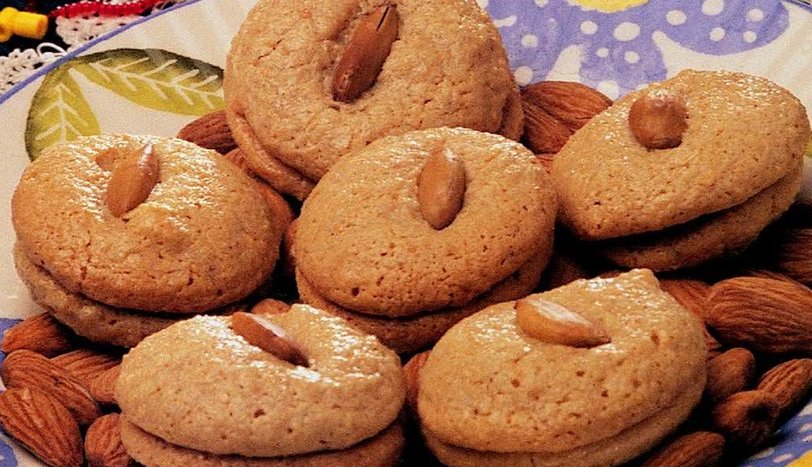 İyice soğuduktan sonra, krema sıkma torbasına doldurun. Fırın tepsisine yağlı kağıt serin. Üzerine yuvarlaklar halinde kurabiyeyi sıkın. 140 derece fırında, fırının kapağını hiç açmadan pişirin. Kurabiyelerin üzerine, ayırdığınız bademlerden birer tane koyun. Soğuyunca servis yapın.