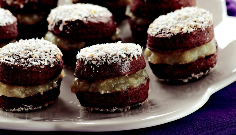Dilediğiniz bir kalıpla kesip, üzerilerine çırpılmış yumurta akı sürün. Hindistan cevizi serpip, önceden ısıtılmış 160 derece fırında pembeleşene dek pişirin. Fırından alıp soğumaya bırakın. Krema için ananası blenderden geçirin. Ananas suyu ve toz şeker ilave edip ocağa oturtun. Toz şeker eriyene dek karıştırın.