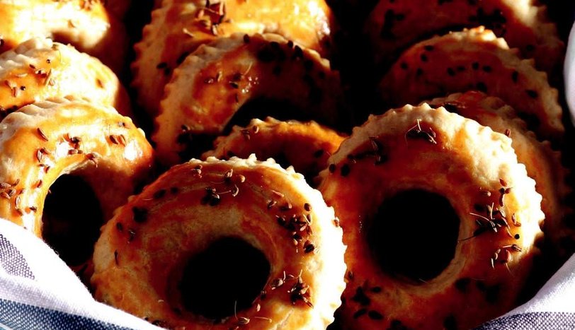 Yuvarlak kalıplarla şekiller kesip, çıkartın. Kurabiyeleri yağlanmış fırın tepsisine dizin. Üzerlerine yumurta sarısı sürüp, anason serpin. Önceden ısıtılmış 170 derece fırında üzerleri pembeleşene kadar pişirin.