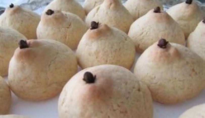 Karanfil taneleri hariç tüm malzemeleri karıştırıp kulak memesi kıvamında bir hamur hazırlayalım. Hamurdan ceviz büyüklüğünde parçalar koparıp, armut şekli verelim. Her bir kurabiyenin üzerine bir tane karanfil yerleştirelim.