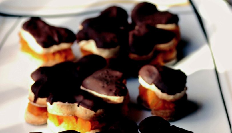 Soğumuş kurabiyelerin bir yüzüne çikolata, çikolatanın da üzerine kabak püresini sürün. Püreli kurabiyenin üzerini başka bir kurabiye ile kapatın. Bu işlemi kurabiyeler bitene dek tekrarlayın.