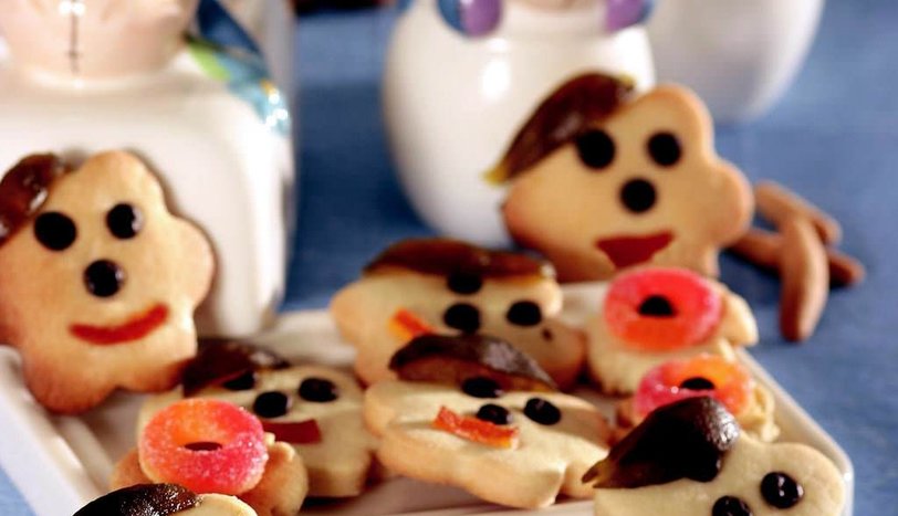 Un serpilmiş tezgah üzerinde 1 cm kalınlığında açın. Kalıplar yardımıyla çiçek ve tavşan şekilleri çıkarın. Meyve şekerlemesi ve damla çikolata ile hamurları süsleyip, yağlanmış fırın tepsisine dizin. Önceden ısıtılmış 170 derece fırında üzerleri hafif pembeleşene kadar pişirin.