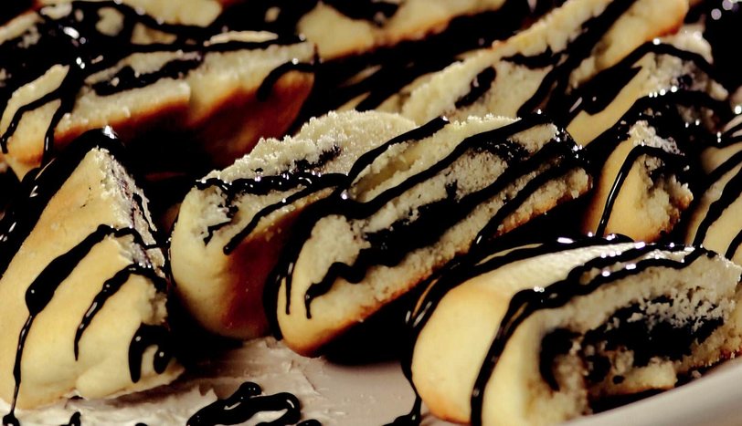 Bir fırın tepsisine yağlı kağıt yayıp kurabiyeleri üzerine dizin. Önceden ısıtılmış 180 derece fırında 15 dakika pişirin. Fırından çıkardıktan sonra servis tabağına alıp soğutun ve üzerilerine çikolata sosu gezdirip servis yapın.