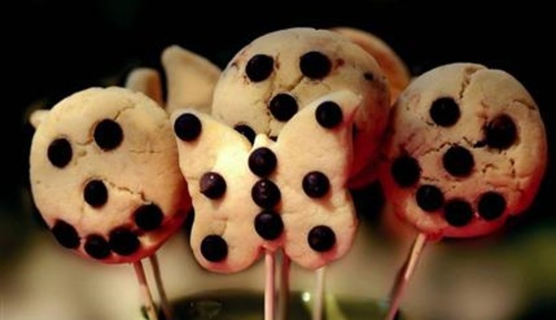 Orta sertlikte bir hamur elde edin. Hamuru iki eşit parçaya ayırın. Merdane yardımıyla hamurları 1 parmak kalınlığında açın ve dilediğiniz kalıplarla şekiller çıkarın. Kurabiyelerin üzerini damla çikolata ile süsleyin.