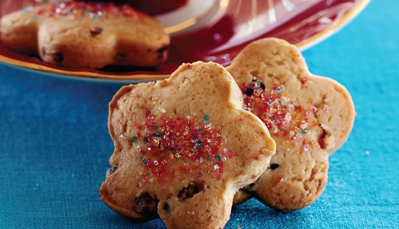 Dilediğiniz kalıpla şekiller çıkartın ve kalan hamuru toplayıp, tekrar açarak şekiller çıkarın. Hamur bitene kadar bu işleme devam edin. Kurabiyeleri yağlı kağıt serilmiş fırın tepsisine aralıklarla dizin. Önceden ısıtılmış 175 derece fırında üzeri hafif pembeleşene kadar pişirin.