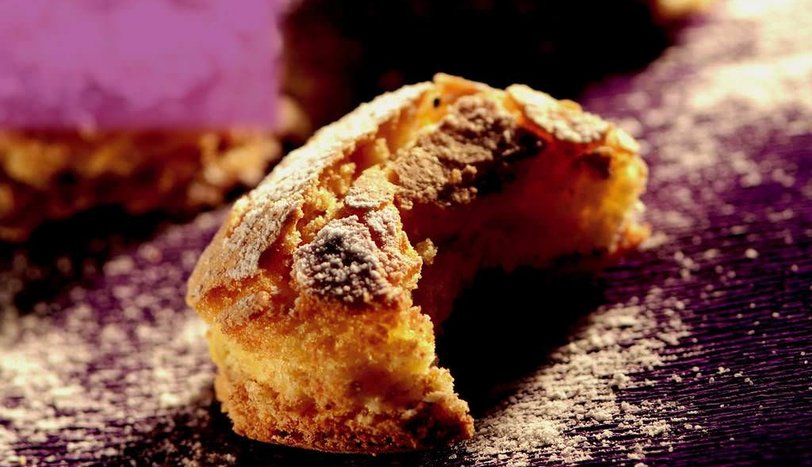 Önceden ısıtılmış 170 derece fırında 30-35 dakika pişirin. Hamurun pişip pişmediğini bıçakla kontrol edin (içine batırdığınız bıçakta hamur kalmıyorsa pişmiş demektir). Fırından çıkartıp ılınması için kenara alın. Ilındıktan sonra su bardağının ağız kısmıyla yuvarlak ve ay şeklinde parçalar kesin. Üzerine pudra şekeri serpip servis yapın.