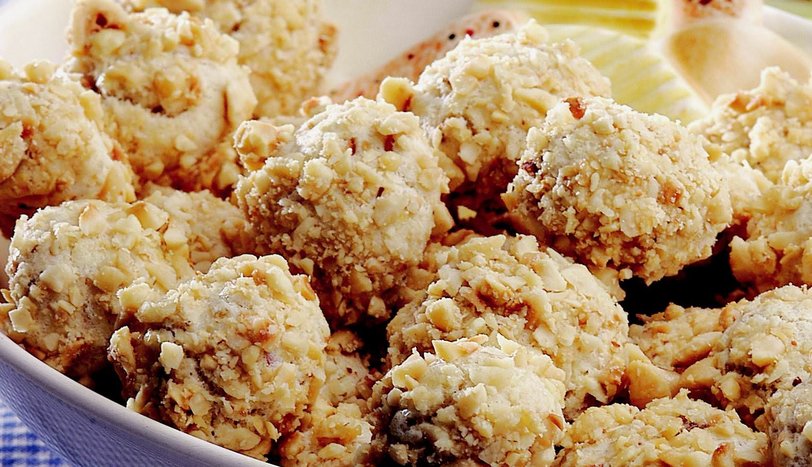 Hamurdan fındık büyüklüğünde parçalar kopartıp avucunuzun içinde yuvarlayın. Hamurları önce yumurta akına daha sonra çekilmiş fındığa batırıp yağlanmış fırın tepsisine aralıklarla dizin. Önceden ısıtılmış 180 derece fırında hafifçe pembeleşene kadar pişirin.