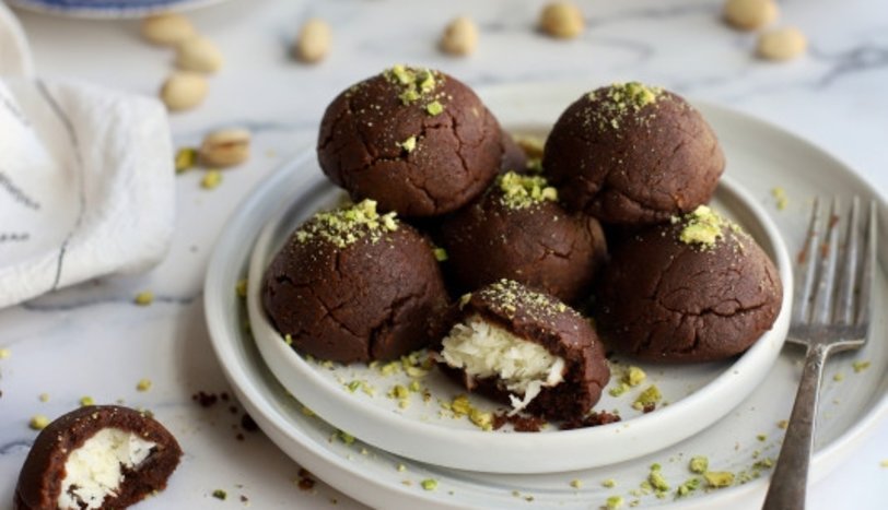 Hindistan cevizli dolgu için Hindistan cevizi, krema ve pudra şekerini iyice karıştırın. Buzdolabına yerleştirip 10-15 dakika dinlendirin. Sürenin sonunda dolgudan ceviz büyüklüğünde parçalar koparıp hafifçe elinizde yuvarlayın ve yeniden buzdolabına yerleştirin.