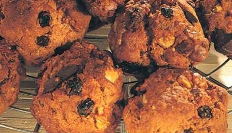 Harçtan ceviz büyüklüğünde parçalar kopartıp, dağınık şekilli yuvarlaklar yapın. Fırın tepsisine yağlı kağıdı yayın. Kurabiyeleri dizin. Önceden ısıtılmış 180 derece fırında 10 dakika pişirin.